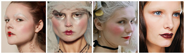 Another big inspiration for me and for the Elizabethan make-up is Pat McGrath at John Galliano A/W '09. I absolutely adore this look, and Pat McGrath is also one of my favourite make-up artists her work is hauntingly beautiful her way of applying and using make-up is just so outrageous, but you can't look away from it. She is also very much inspired by Elizabethan make-up, if you've seen most of the shows she worked on you'll be able to see that the use of pale skin, circle rouge and pointed red lips just scream Elizabethan.